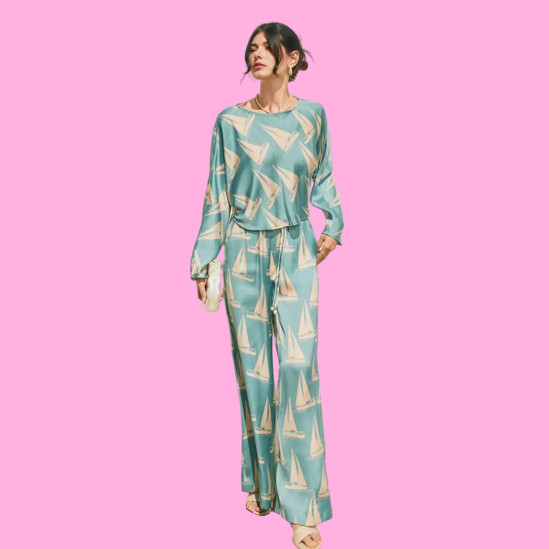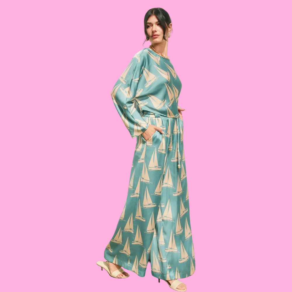 Nautical Boat Embroidered Wide Leg Jumpsuit