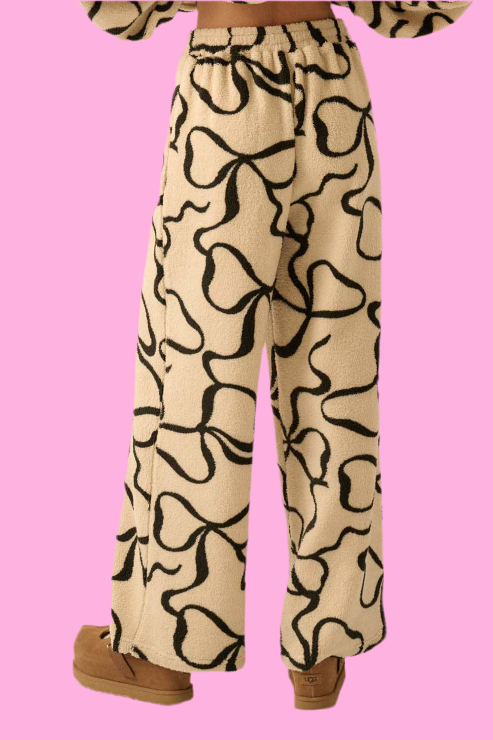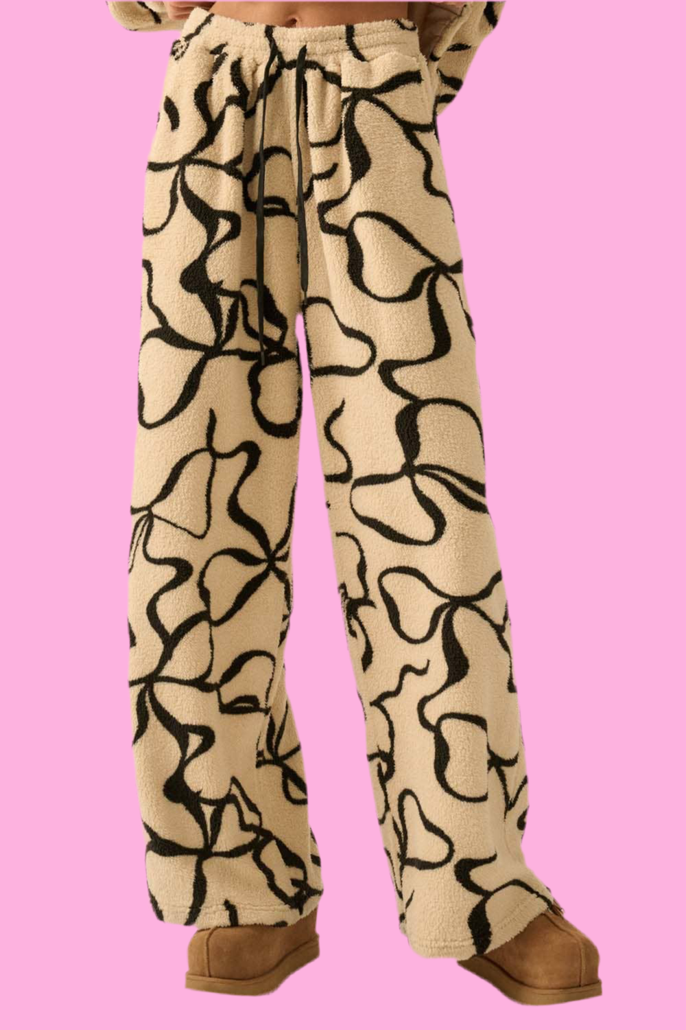 Bow-Print Fleece Wide-Leg Drawstring Pants