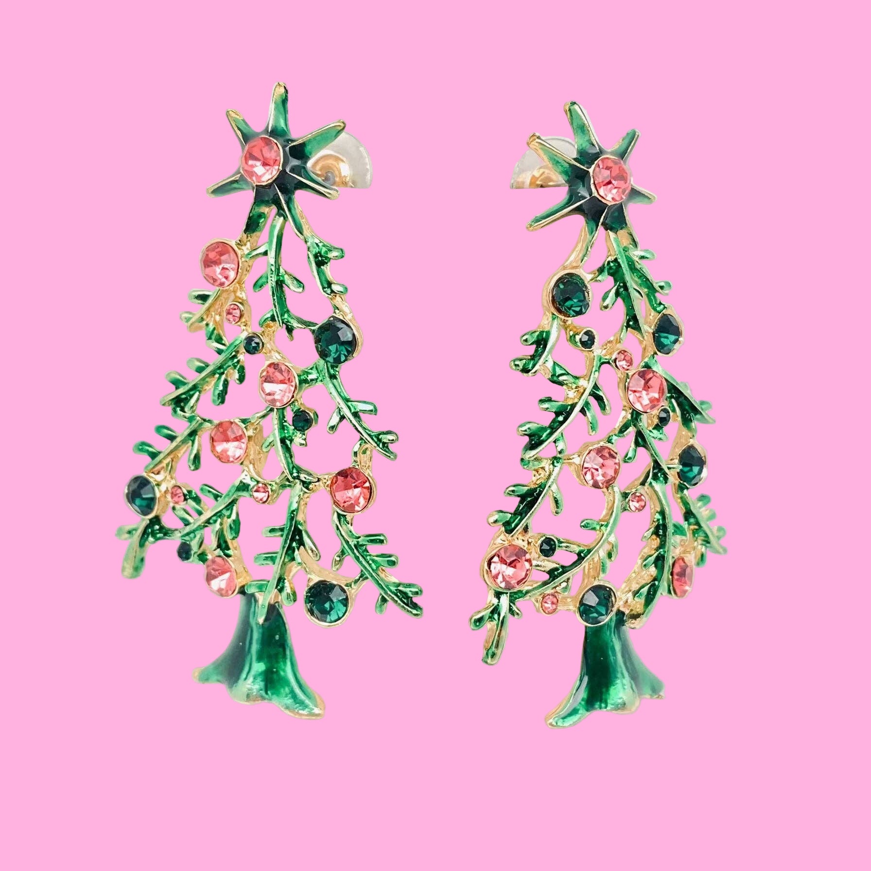Add a festive touch to your holiday look with The Beverly Hills Christmas Tree Earrings. These playful pink and green earrings will have you feeling jolly all season long. Perfect for a quirky and fun addition to any outfit.