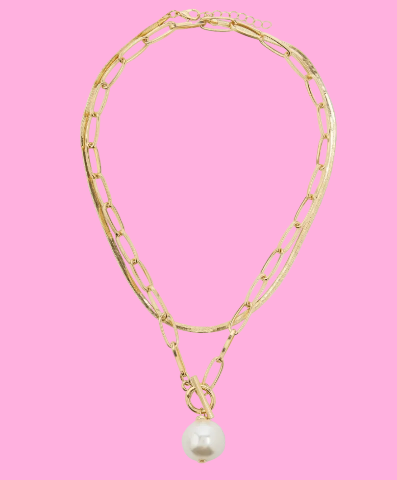 Indulge in the luxurious layers of The Double Double Pearl Necklace. Featuring a slim snake and chunky Paperclip & Pearl chain, this piece is perfect for stacking. With a toggle closure and two separate chains, it offers versatility and elegance. Made from PVD plated stainless steel, it's hypoallergenic, lead and nickel-free, and anti-tarnish. Experience a play on texture and form with The Double Up.