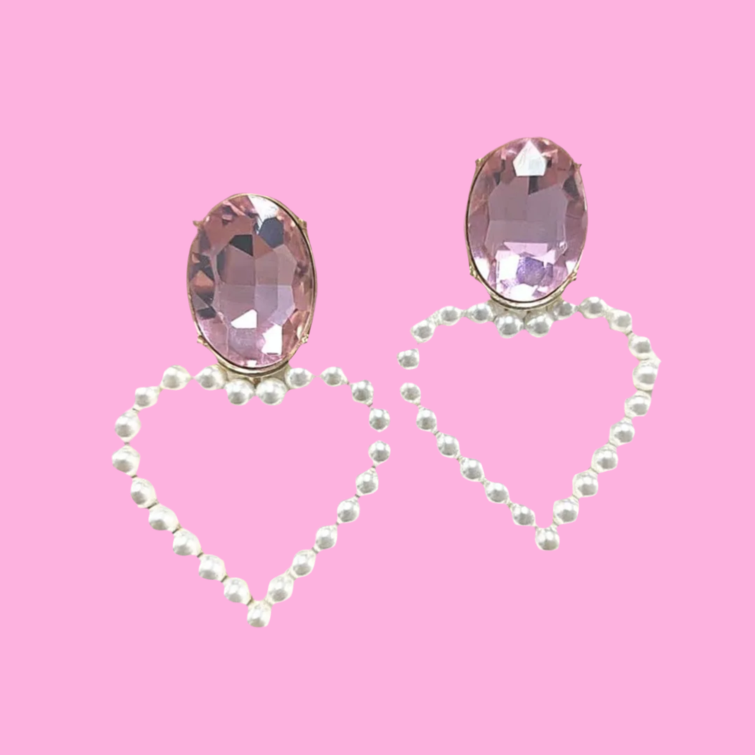 Blush Pink Jewel & Pearl Heart Earri