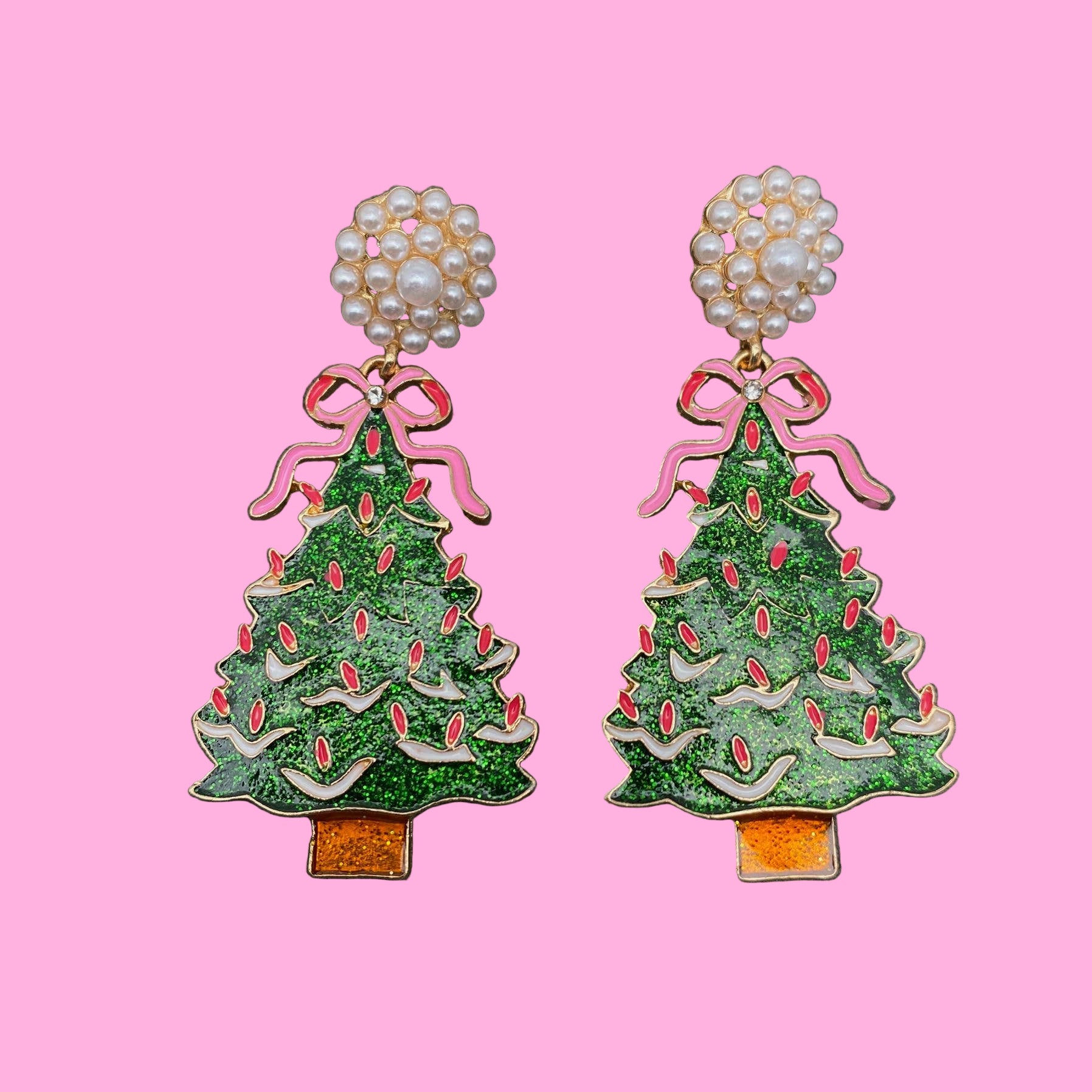 Add a touch of vintage nostalgia to your holiday look with these Christmas Tree Pink Bow Earrings! These playful earrings feature a pink bow design that will bring a pop of color to any outfit. Spread some holiday cheer with these quirky and fun earrings.