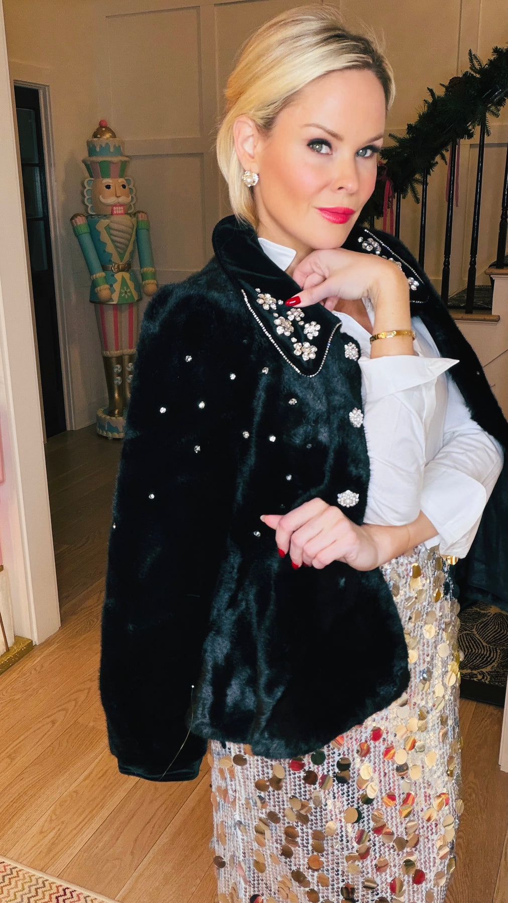 This winter faux fur coat exudes elegance and warmth with a touch of luxury. Made from eco-friendly plush material that mimics the softness of mink, it offers both comfort and sustainability. Each rhinestone is carefully hand-embellished, adding a subtle sparkle that enhances its refined aesthetic. The tailored silhouette flatters the body while ensuring cozy wear during cold seasons. Perfect for evening outings or special occasions, this coat delivers timeless glamour and modern sophistication, making it a must-have statement piece for your winter wardrobe.