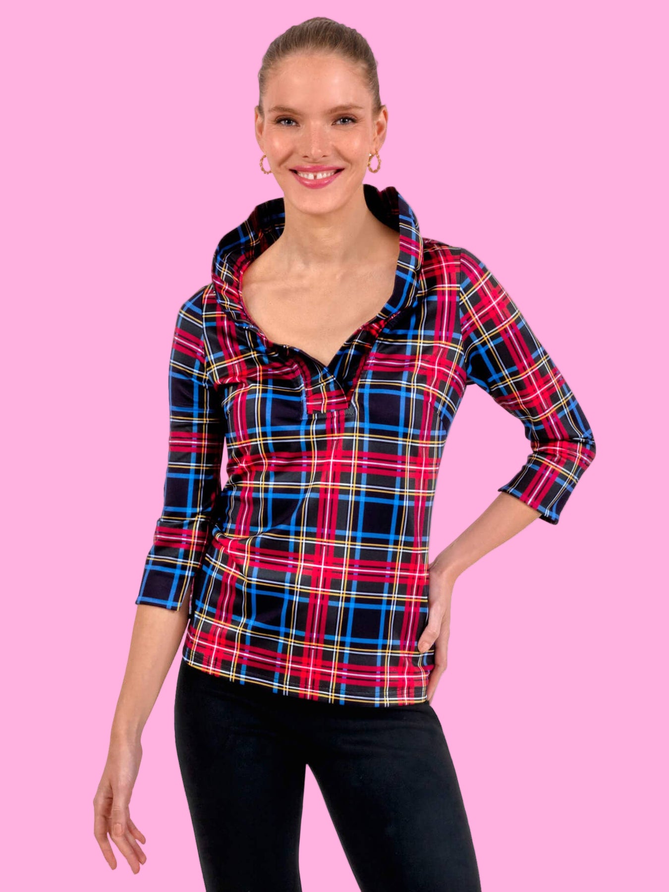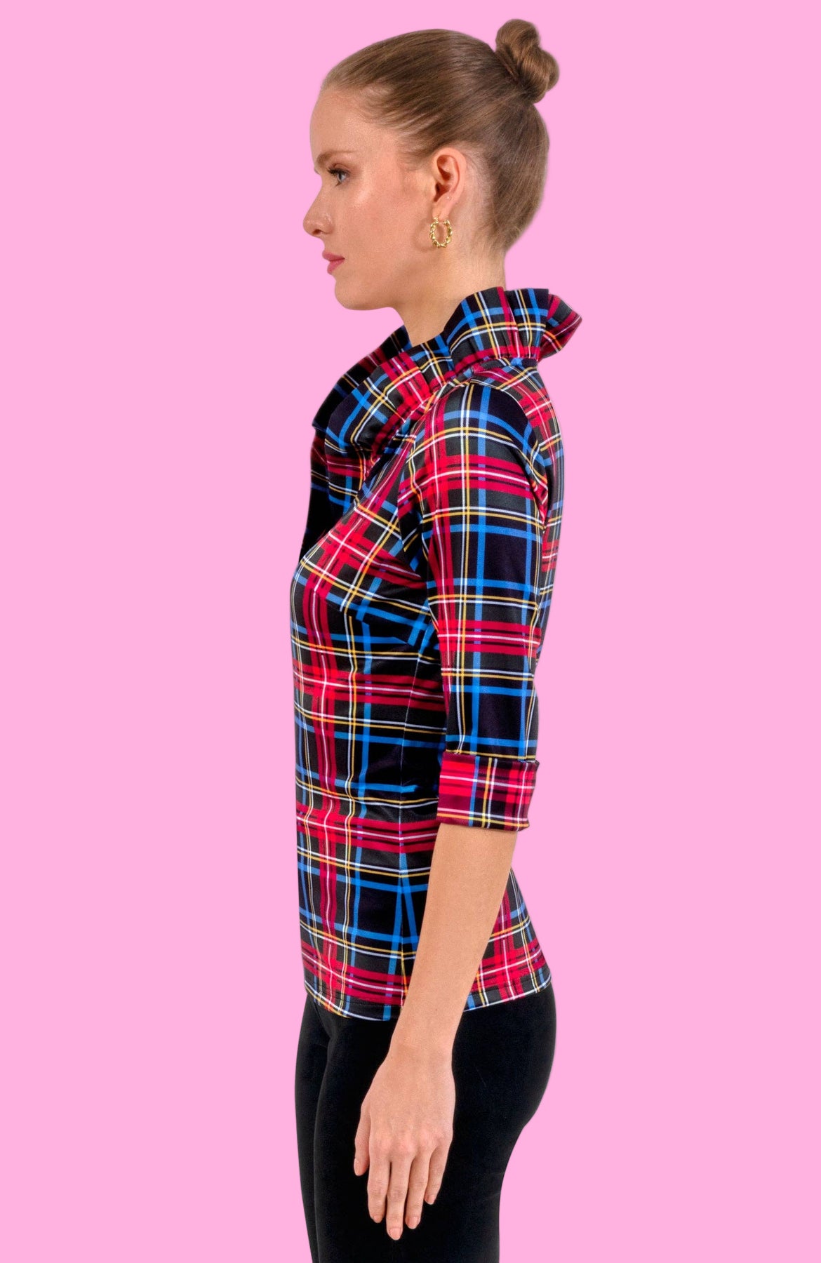 Introducing the Ruffneck Top - Duke of York, the chicest holiday plaid top featuring a self-standing collar. Embrace elegance with this sophisticated and exclusive piece, perfect for any festive occasion. Stand out in style and elevate your wardrobe with this must-have addition.